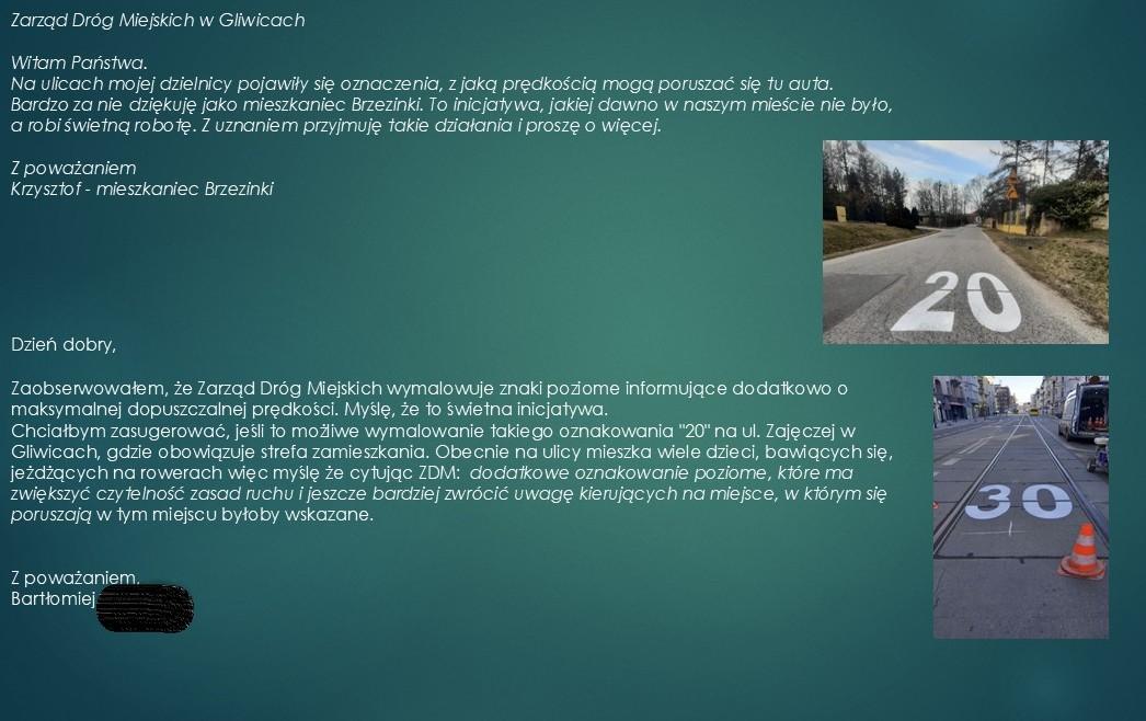 Bardzo cieszy nas, że nowe oznakowanie poziome w strefach zamieszkania oraz strefach tempo 30 w Gliwicach spotyka się z Państwa pozytywnymi opiniami. Jak sami zauważacie, jest ono znacznie bardziej widoczne i skutecznie przykuwa uwagę kierowców.
