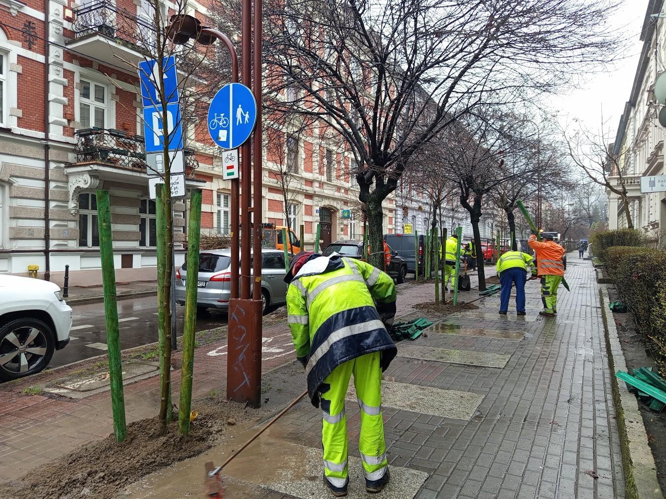 Nie straszna im pogoda – wręcz przeciwnie, twierdzą, że to idealna aura na tego typu prace. Nasze ekipy są już na alei Korfantego i prowadzą nowe nasadzenia, uzupełniając rosnący tu szpaler ambrowców amerykańskich odmiany 'Worplesdon' o 20 nowych drzew.